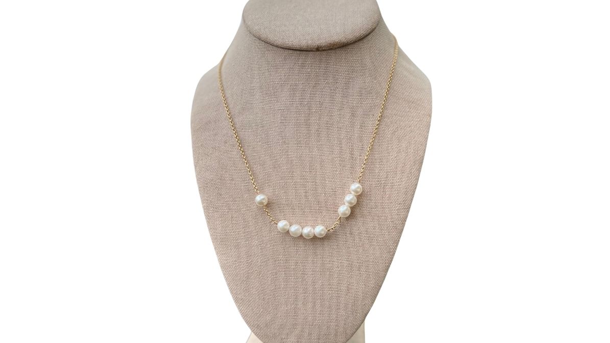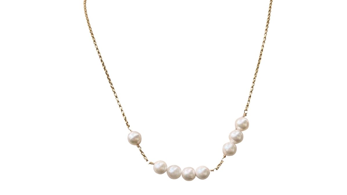 143 Collection Necklace in 14K gold fill double rollo chain featuring White Akoya Pearls