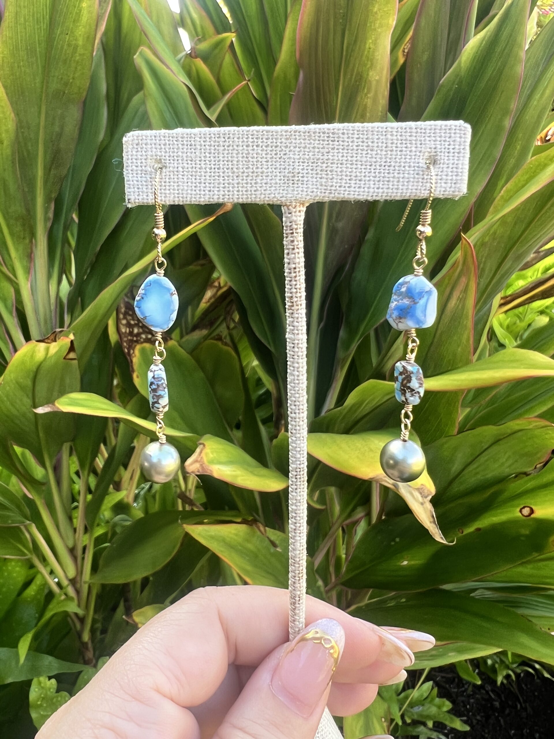 Golden Hill Turquoise and 9mm Bronze Tahitian Pearl Earrings, 14K Gold Fill non-slip earwires